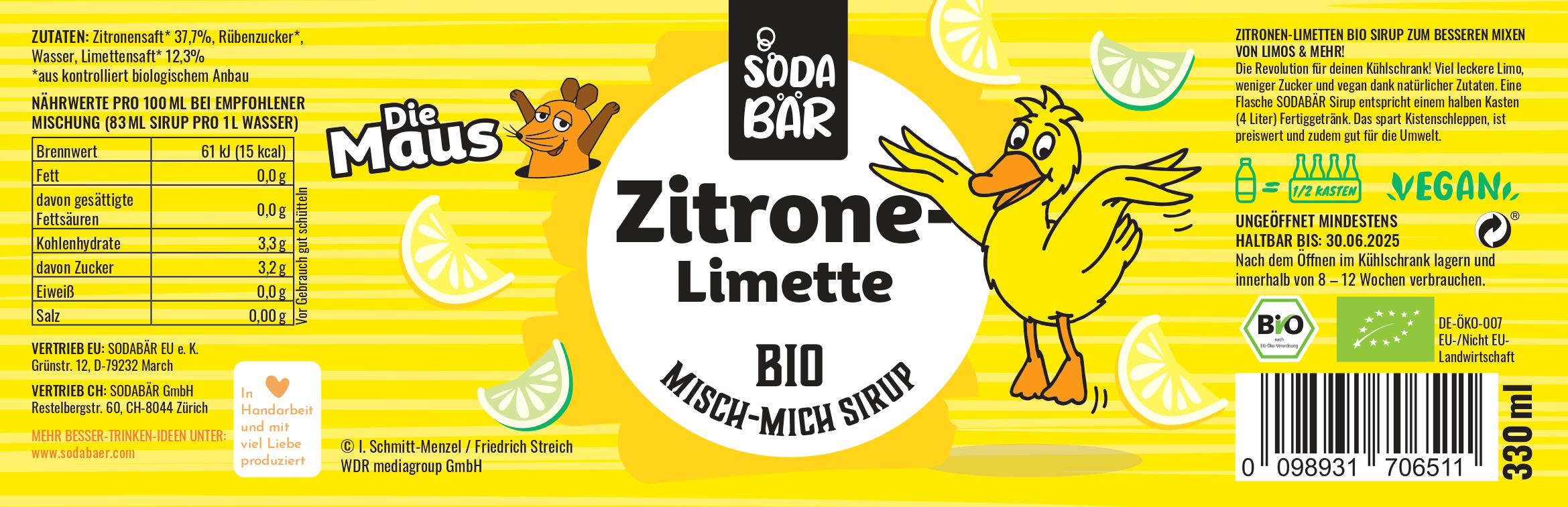 Zitrone-Limette: Zitronensaft* 37,7%, Rübenzucker*, Wasser, Limettensaft* 12,3%