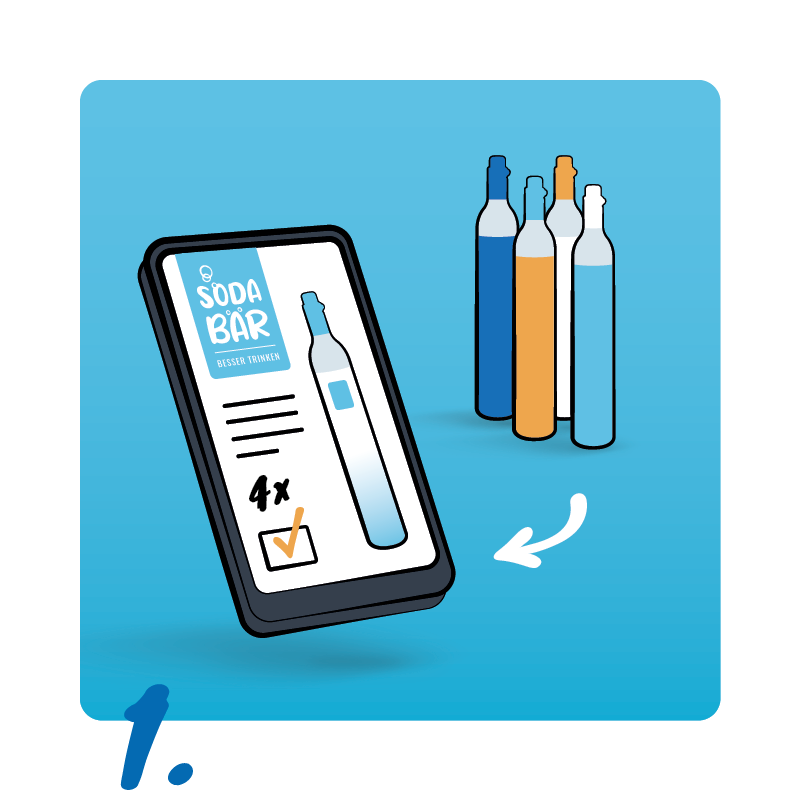 2. Bestellen Sie hier die SodaBär© Tauschbox. Die vollen Zylinder erreichen Sie von 1-3 Werktagen nach Zahlungseingang an die gewünschte Adresse. Sie brauchen zusätzliche neue Zylinder, dann bestellen Sie diese HIER mit.