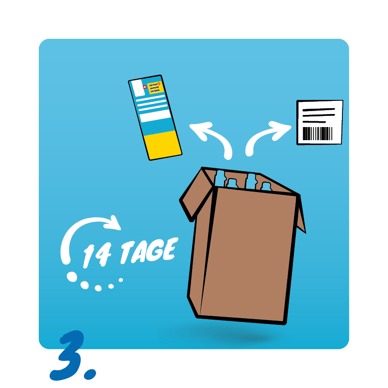 3. Nach Erhalt schicken Sie Ihre leeren Zylinder in der selben Verpackung innerhalb von 14 Tagen per beigefügter Rücksendemarke zu uns zurück. Fertig :)